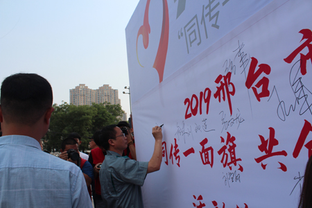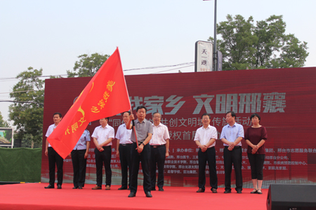 2019年6月17日上午,我公司與邢臺市各行業(yè)的30家代表單位共同參加了,由市宣傳部、文明辦舉辦的“同傳一面旗 共創(chuàng)文明城”傳旗活動暨手繪邢臺授權(quán)首展啟動儀式。